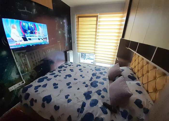 Das 1-Zimmer-Jacuzzi For Relax - Hollywood Apartment, Stup, Sarajevo befindet sich in Sarajevo, ungefähr 7 km vom Nationalmuseum von Bosnien und Herzegowina entfernt, und bietet einen Jacuzzi. Das Apartment verfügt über einen Swimmingpool und eine Terrasse mit Blick auf die Berge.